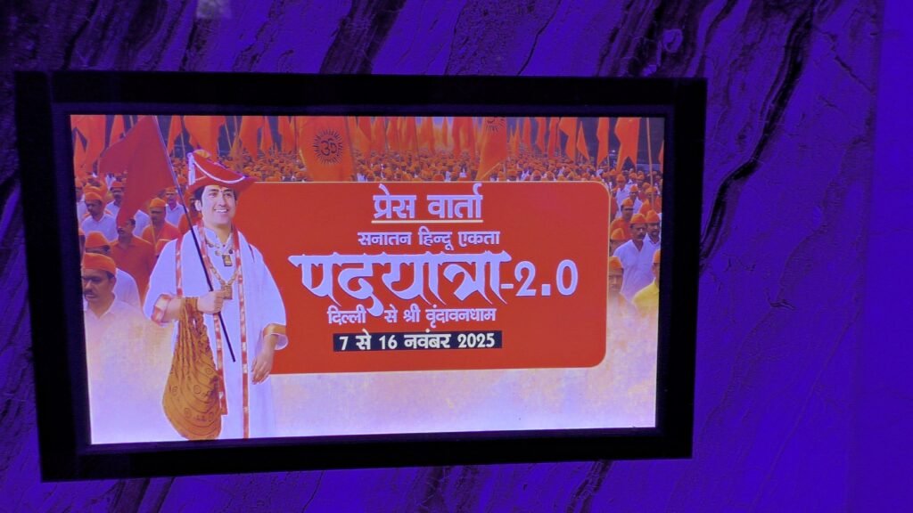नई दिल्ली, 6 नवम्बर 2025 — आज दिल्ली के संविधान क्लब में एक विशेष प्रेस कॉन्फ्रेंस का आयोजन किया गया, जिसमें बागेश्वर धाम सरकार आचार्य धीरेंद्र कृष्ण शास्त्री जी महाराज ने आगामी “सनातन हिन्दू एकता पदयात्रा” की रूपरेखा साझा की।
